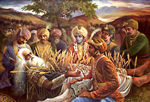 और उस दिन भीष्म के क्रोध न करने का फल भीष्म को मिला , छे महीने तक वाणों के सर सैया , वाणों की सेज पर पड़े रहने का फल ।