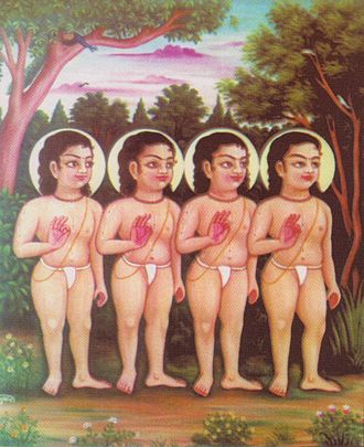 These four Kumaras are the eldest sons of the creator-god Brahma. They are said to be lord Vishnu’s first incarnation. All four brothers studied Vedas from their childhood. They always travelled together. They are said to wander throughout the materialistic and spiritualistic universe without any desire but with purpose to teach. The four Kumaras undertook lifelong vows of celibacy (brahamacharya) against the wishes of their father. They all learned Vedas at an early age of five. The Kumaras remained in form of children due to their spiritual virtues.