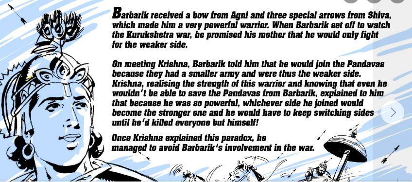 Before the Kurukshetra war, Barbarika expressed his wish to join the fight. However, Lord Krishna, disguised as a Brahmin, tested his intentions. Krishna knew that Barbarika’s presence could shift the course of the war and cause endless destruction. He asked Barbarika for a donation—a test of the young warrior’s humility. Without hesitation, Barbarika offered his own head, understanding that his presence would disrupt the divine plan.
