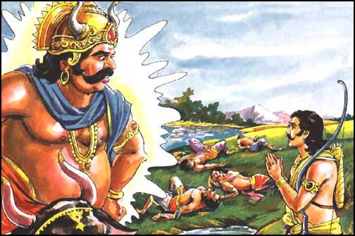 Yudhisthira said we are sons of two mother Kundi and Madri. I am Kunti’s son so please bring one of Madri’s son back to his senses. Hearing this reply the voice said you have again pleased me with your impartial judgement. Suddenly, Yama the God of death appeared and brought all the four Pandavas back to their senses.