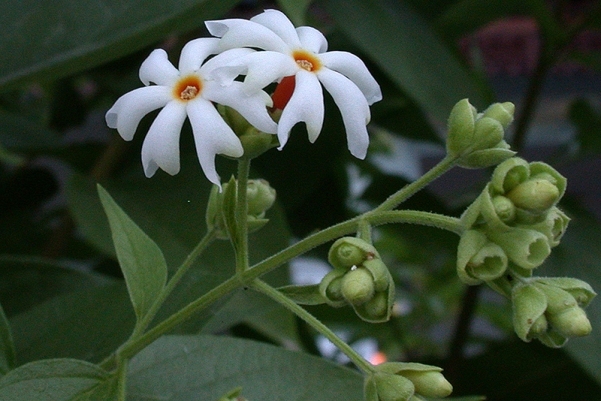 Parijat, Harsingaar or Shiuli are the different names of the sacred Parijat flower and have a divine fragrance. Beside having medicinal and culinary value the flower holds a very important place in mythology. The flowers are so auspicious that they are picked from ground and are offered to God. Flowers bloom at night and fall at the first ray of light.