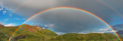 Rainbow, a seven coloured arch, which is formed when sunlight passes through the droplets of moisture. A very natural phenomenon, but is a favourite component in mythology.