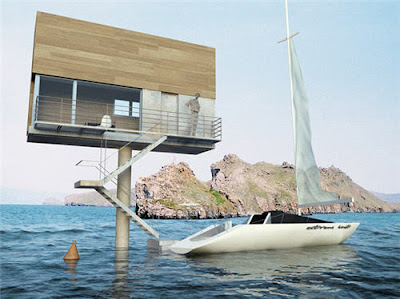 The design of the House on the Stick was inspired by highway billboards . The house is rather small. It is only 27 square meters (290 square feet) and as such it is not intended to be a family residence. It is designed as an object suitable for almost every place on earth, for instance, forests, seas, lakes, mountains, meadows as well as on the main city street.