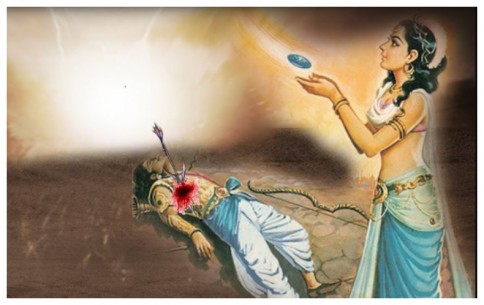 Shri Krishna brings Arjuna back to life