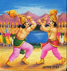 Both warriors possessed exceptional physical strength and had trained under Balarama in mace fighting and wrestling to the same level of prowess. Duryodhana was more agile,nimble but Bhima had more strength. After a long and brutal battle, Duryodhana begins to exhaust Bhima.