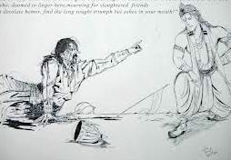 Duryodhana managed to struck Bhima, which rendered him unconscious. Bhima looked toward Shri Krishna and he pointed towards his thighs. Bhima understood and soon obliged. Balrama became furious as it was against the rules of the war.Shri Krishna intervenes, but Mahabharata war was practically over by now.