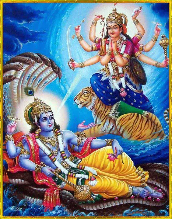 Just when Mur demon(danav) was about to strike Lord, from the divine senses of God, appeared a beautiful woman with all sorts of divine artilleries in her hands.