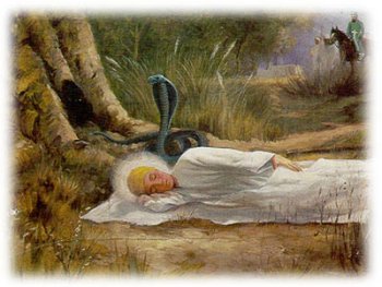 Stories from his life give details of his divine awareness from a young age. At a very tender age, Nanak is said to have voiced interest in divine subjects. At age seven, he started attending school. Some childhood accounts refer to strange and miraculous events about Nanak, once the sleeping child’s head was shaded from the harsh sunlight, by the stationary shadow of a tree or by a poisonous cobra.