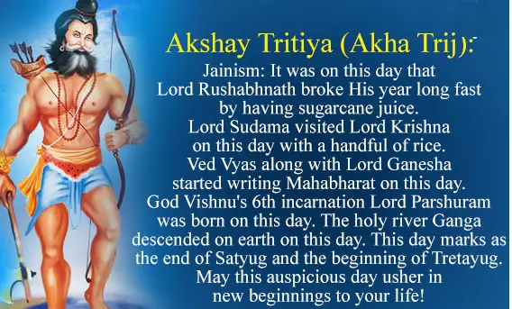 This auspicious day is also celebrated as Akshay tritiya and is more popular. On this Akshaya Tritiya day the Sun, Moon and Venus are in their signs of exaltation and it is very auspicious. According to some scriptures, on this day and with these astrological combinations the ancient Rishis performed the first yagya in the history of mankind and it marked the start of a time regarded as the Golden Age of Indian culture.