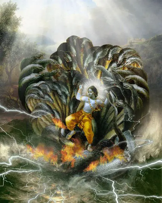 The serpent poisoned everything in the surrounding of Yamuna River. Vapours and bubbles in the river killed even birds that flew over the region.