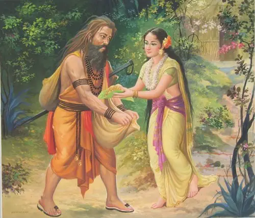 When Rama went in the forest in search for dear he ordered Lakshmana not to leave Sita alone in any circumstances. When Rama killed the deer- Mareech imitated Rama’s voice and cried for help. In Spite of Lakshmana refusal to leave Sita alone, she forced him to go and help his brother Rama.