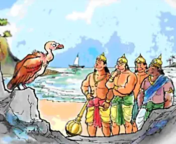 During Kishkindha Kand, Sugriva ordered a bunch of monkeys led by Jambvant and Hanuman to search for Devi Sita. They came near to the abode of Sampati. Sampati became very pleased to see such a large gathering of the monkeys. He thought that these monkeys have been a gift of God, so that his hunger could be satisfied.